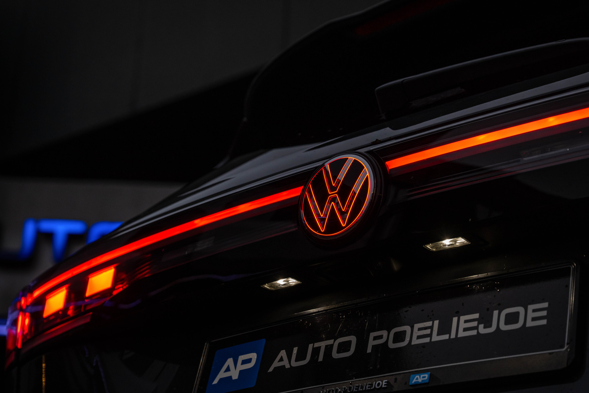 18079 VW Logo voor / achter, Hoeklijst tussen Koplamp / Achterlichten verlicht met Animation UD8